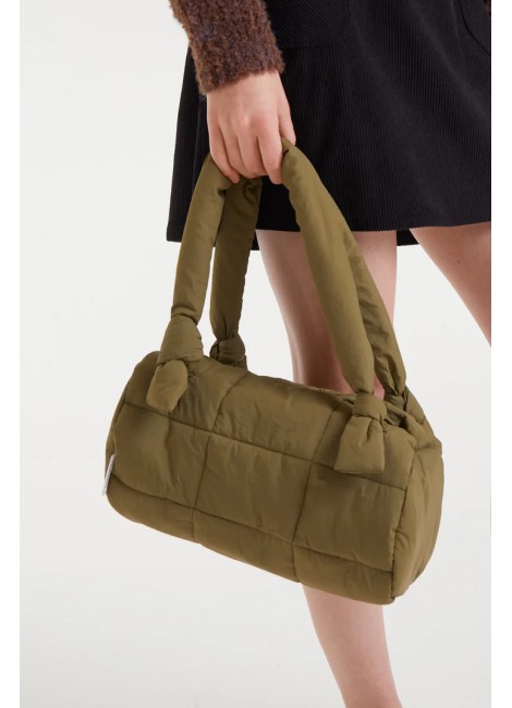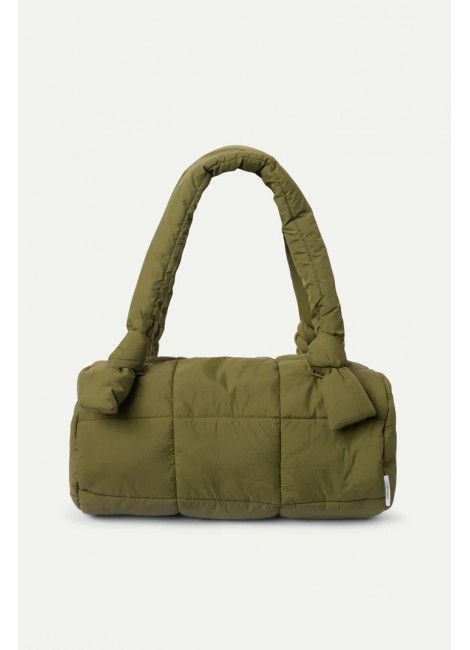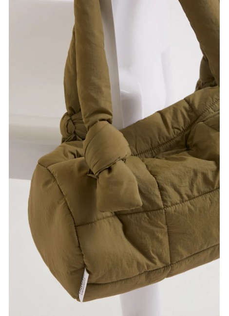 Bolso de hombro con tejido acolchado verde. Con asa para colgar al hombro. Cierre con imán y bolsillo interior.