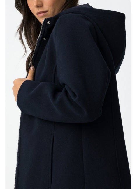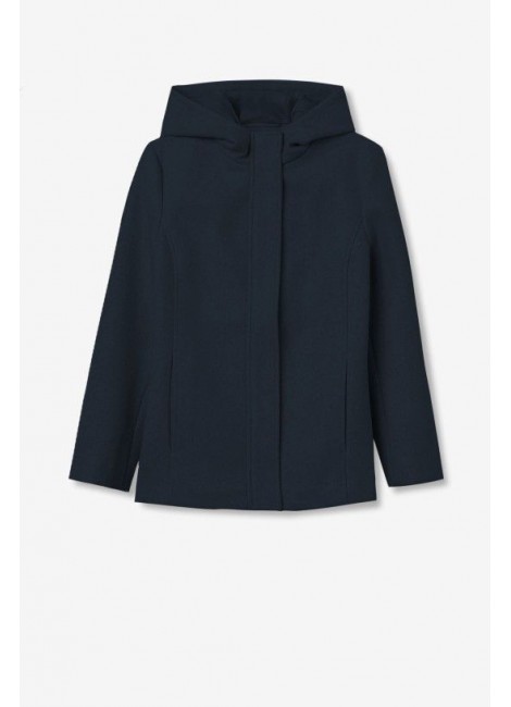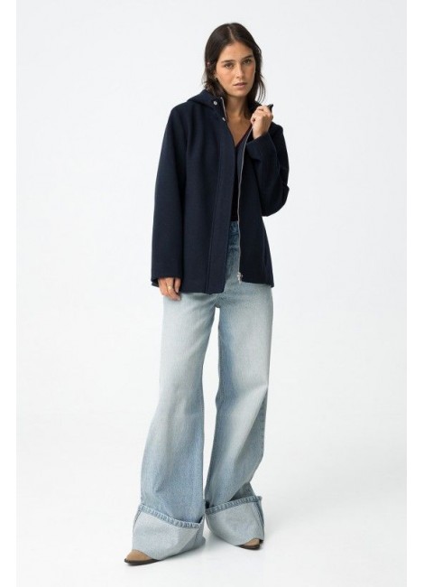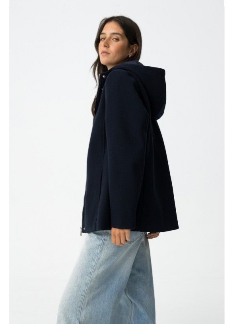 cazadora corta regular fit con dos bolsillos frontales, cierre de cremallera y tapeta reforzada con botones de presión. Capucha y manga larga.