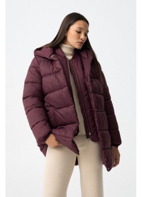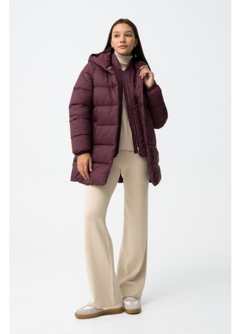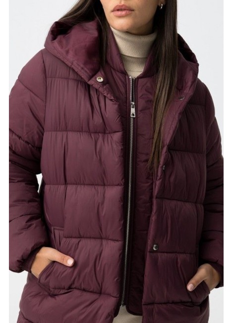 Abrigo largo relaxed fit de nylon acolchado, con dos bolsillos frontales. Cierre de cremallera frontal con tapeta reforzada con botones de presión. Capucha y manga larga con puños elásticos. Interior con tira bandolera.