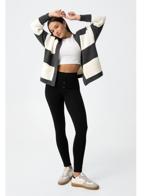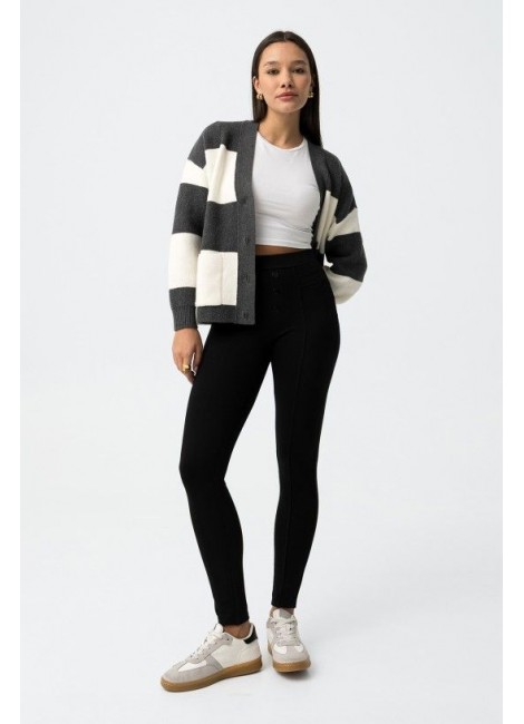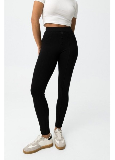 Leggings skinny fit. Cintura alta con tres botones frontales. Costuras verticales. Tejido elástico.