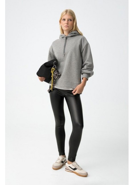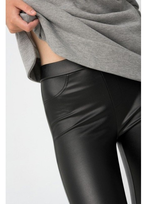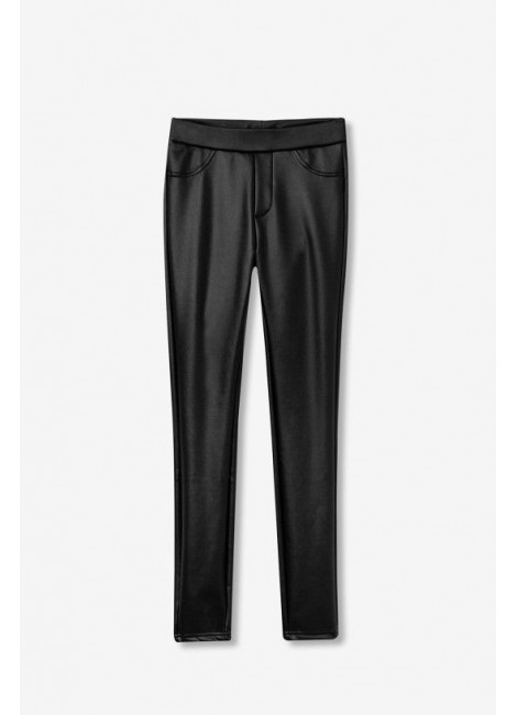 Leggings efecto cuero, con perneras ajustadas, cintura elástica y costuras decorativas de bolsillos.
